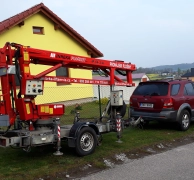 Hlavní výhodnou přívěsných pracovních plošin je jejich kompaktní velikost a snadný transport. Díky pevné stabilizační základně s hydraulickými opěrami a několikametrovému rameni pokryje plošina velkou pracovní plochu.